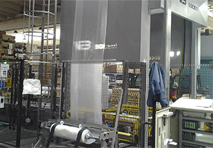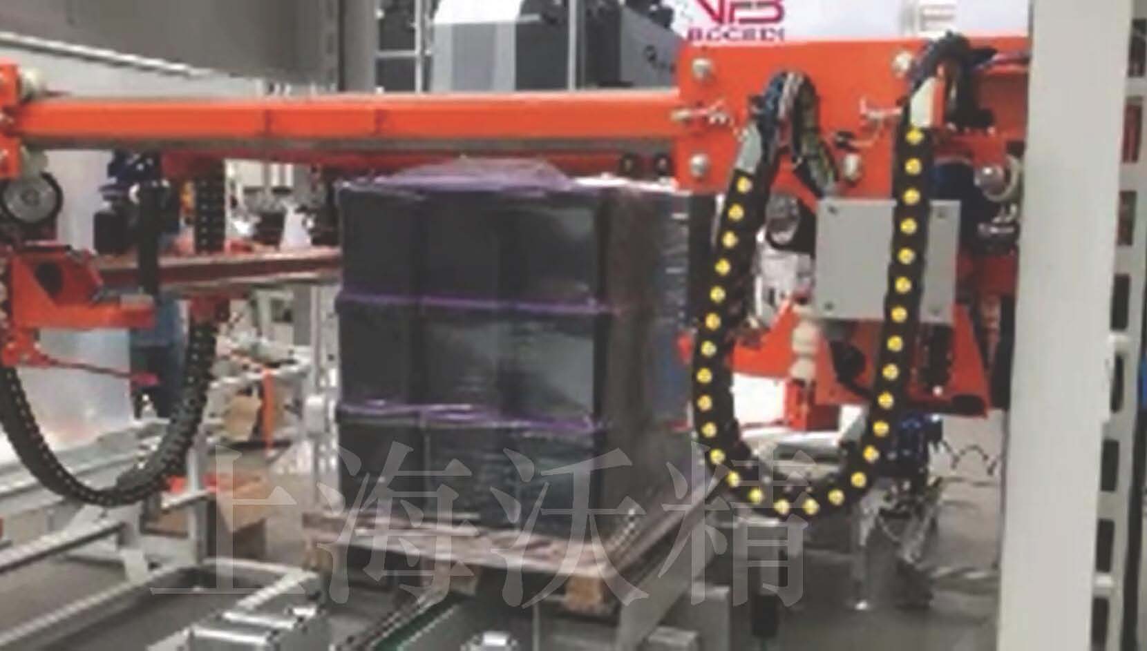? 環(huán)帶圍膜拉伸程序: 通過在垛形指定的高度位置套上環(huán)形圍膜薄膜,來提高產(chǎn)品穩(wěn)定性。