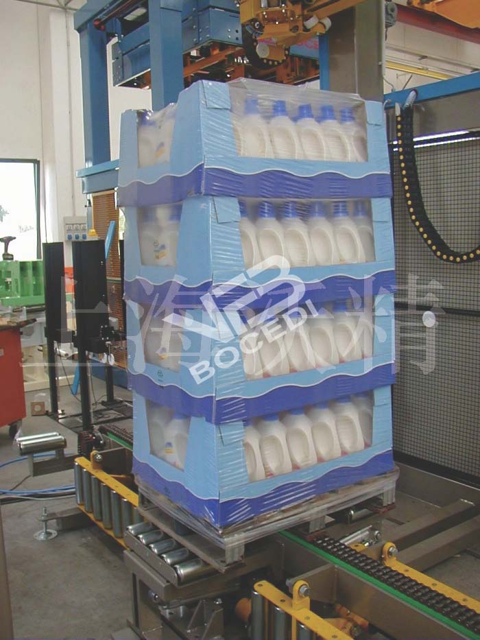 ? 多層膜扎繩程序: 薄膜多層形成繩子在垛形任意高位置或者托盤上方,加固性包裝。