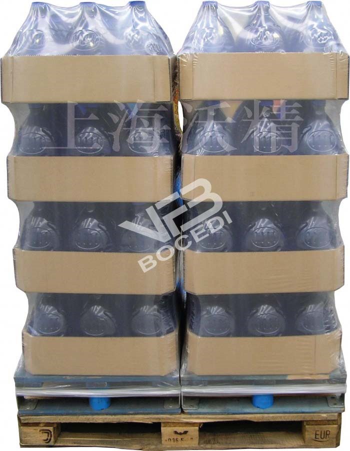 飲料業(yè)的托盤包裝要求:在運(yùn)輸過程中,它們的包裝必須完好地保護(hù)好產(chǎn)品。在其生產(chǎn)工藝過程中有產(chǎn)能高,要求能耗低及其產(chǎn)品需要防水防潮防塵的要求,而且碼垛層數(shù)越來越多目的是節(jié)省運(yùn)輸成本,其露天存放的要求目的是為節(jié)省倉庫投入和存儲成本,冷拉伸套膜包裝是最佳的5面包裝解決方案。